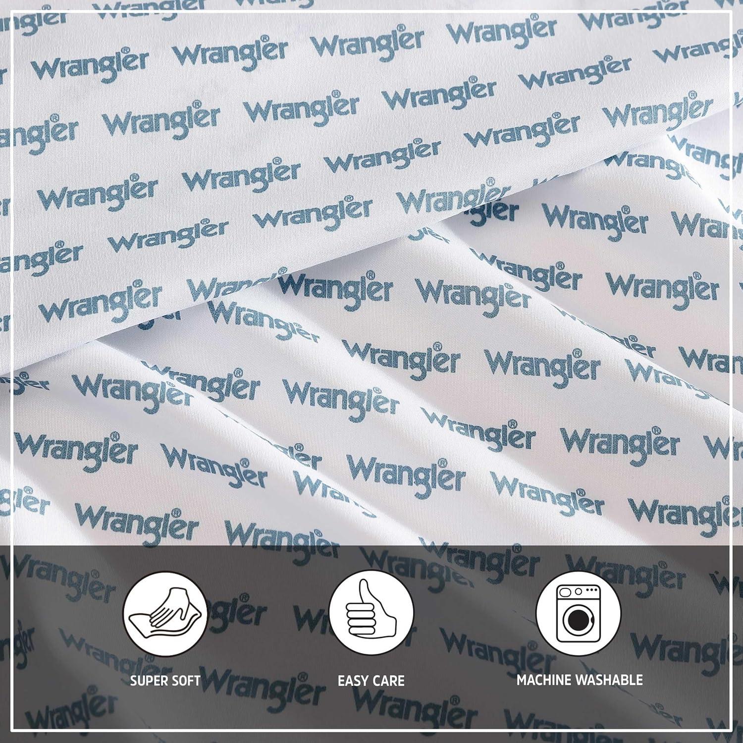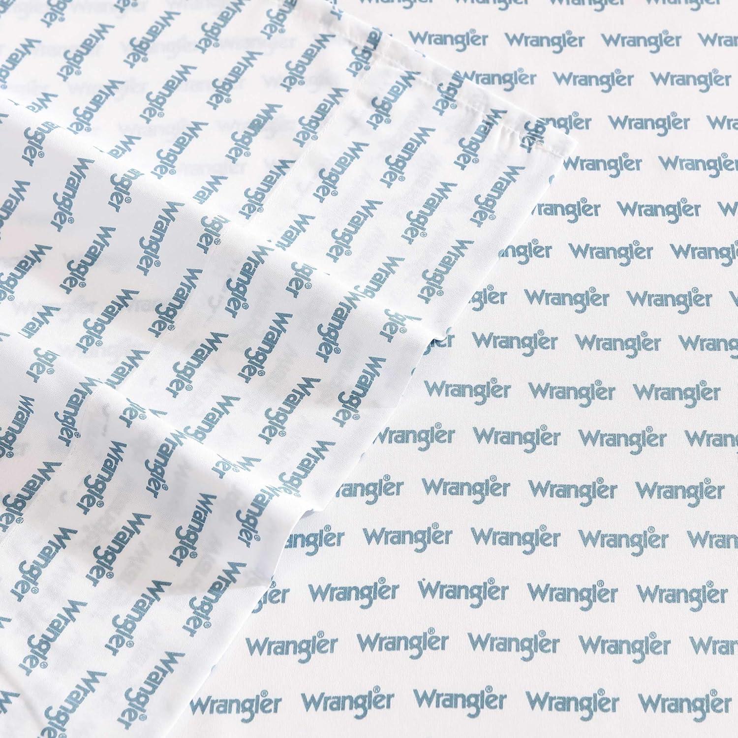 Wrangler – Twin Bed Sheets, Ultra-Soft & Lightweight Bedding with Matching Pillowcase, Lightweight Bed Set for All Season Comfort, Oeko-Tex Certified (Prairieland Paisley Blue)(Stamped Logo Blue)