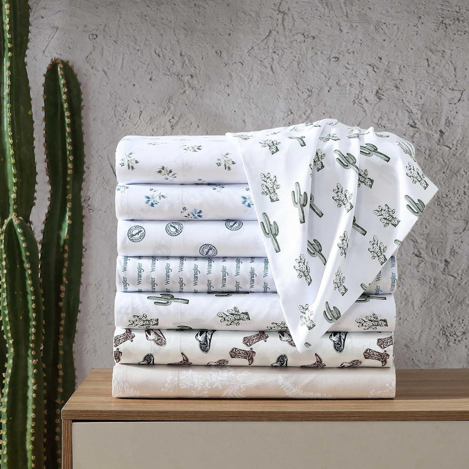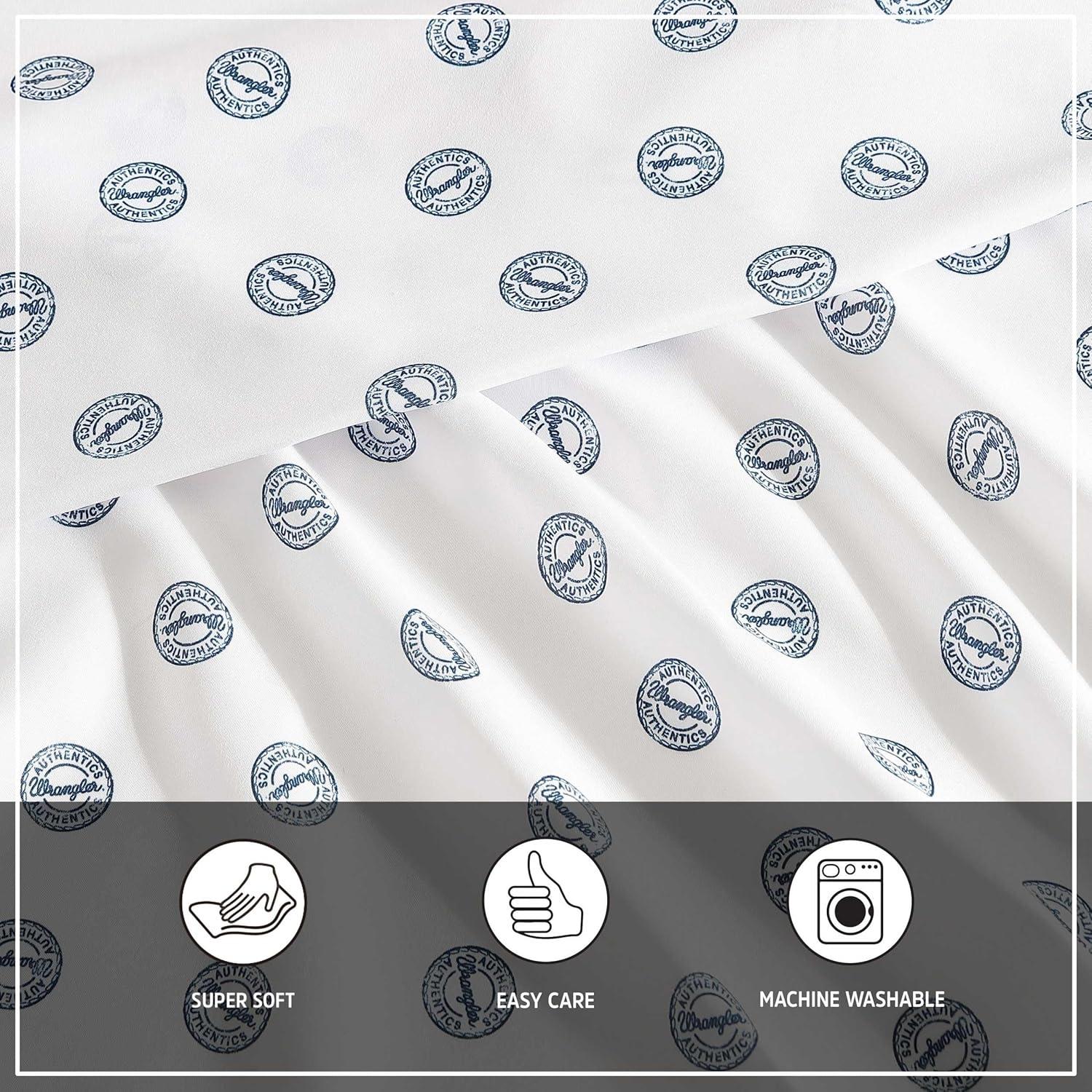 Wrangler – Twin Bed Sheets, Ultra-Soft & Lightweight Bedding with Matching Pillowcase, Lightweight Bed Set for All Season Comfort, Oeko-Tex Certified (Prairieland Paisley Blue)(Tossed Button Blue)