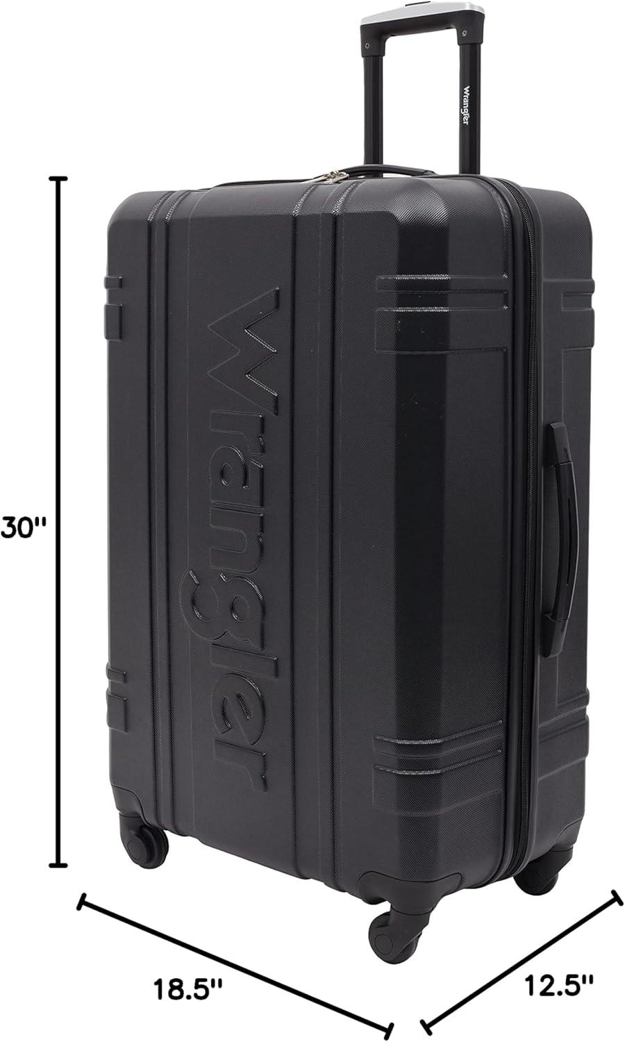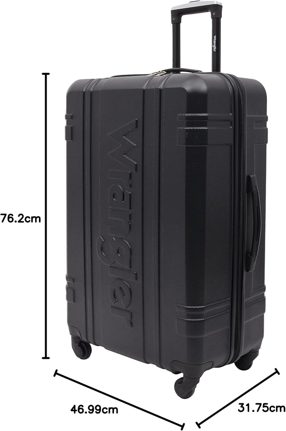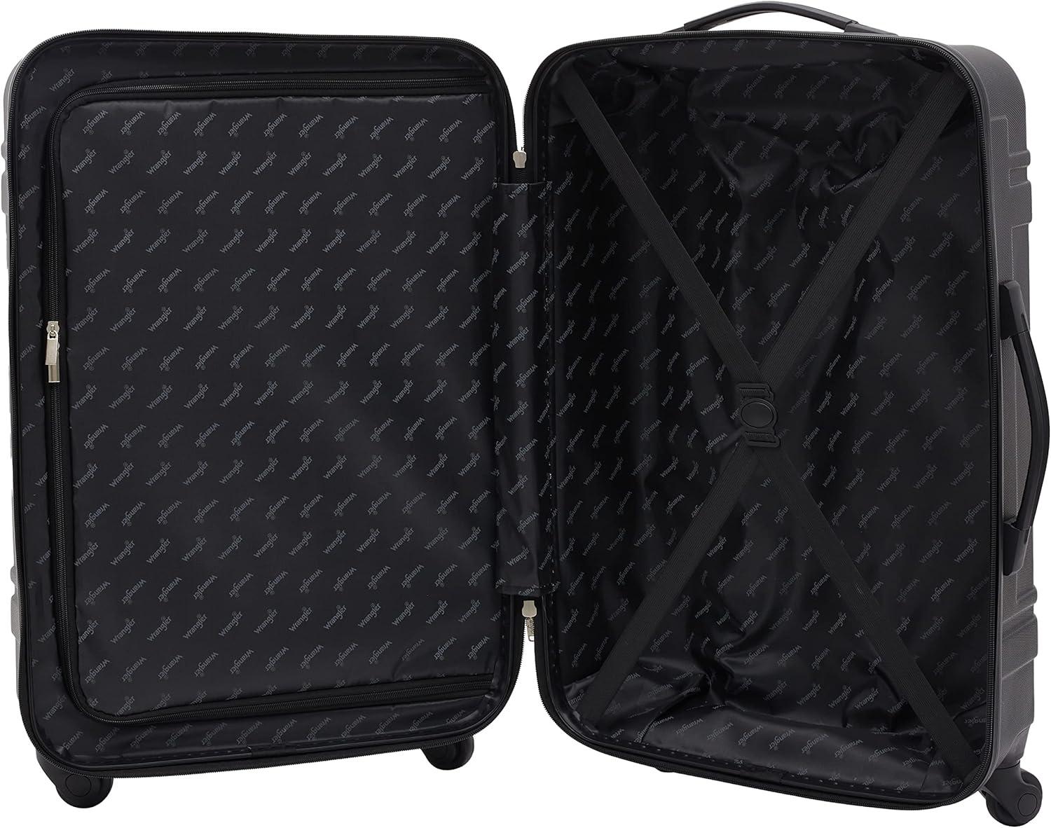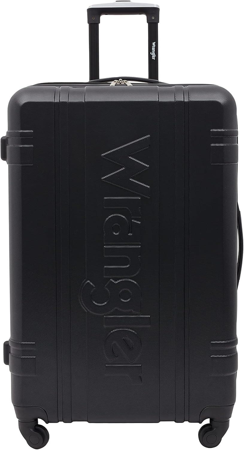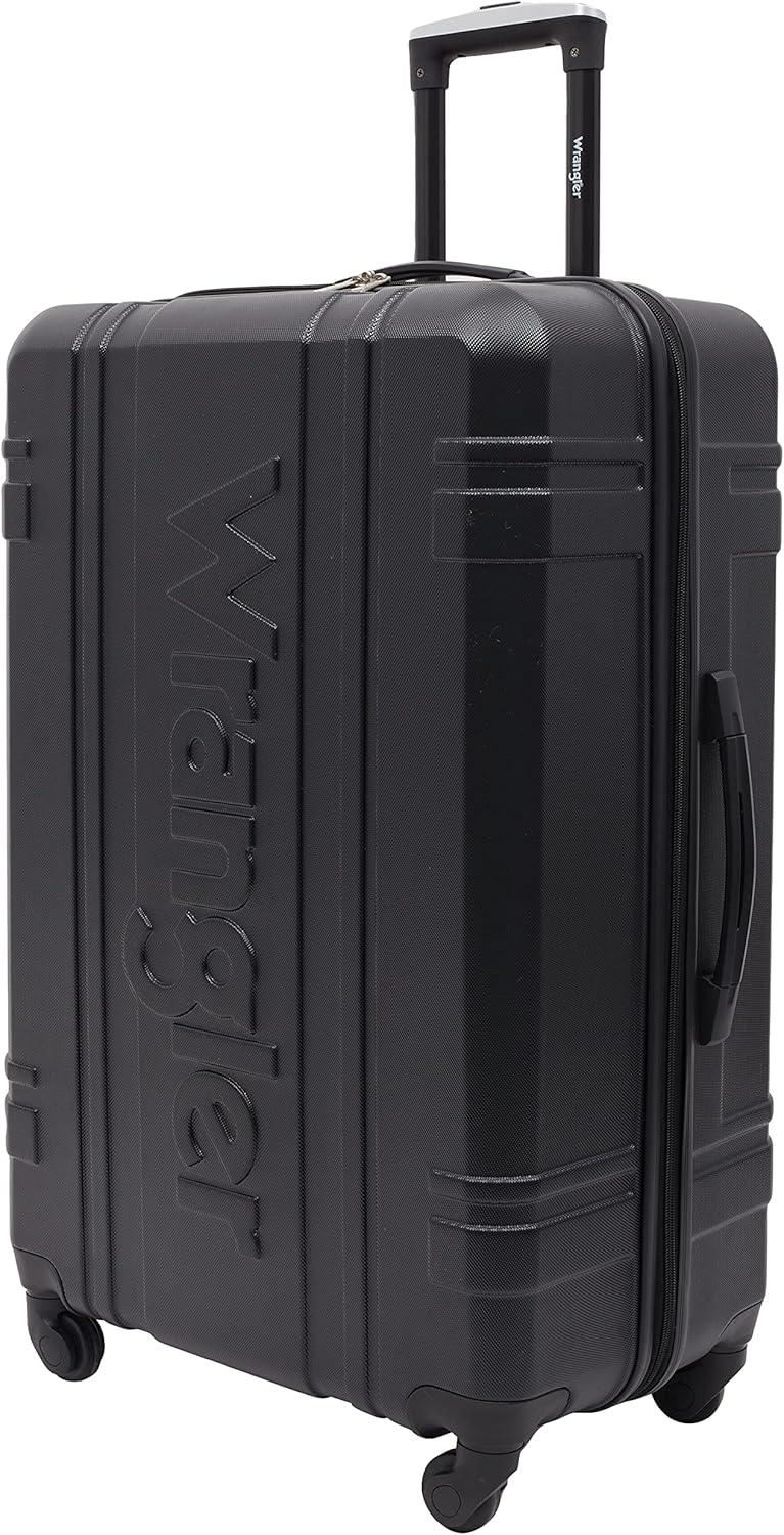 Wrangler 7 Piece Luggage Set Includes 28″ Check-In Suitcase, 24″ Check-In Suitcase, 20″ Carry-On, and 3 Packing Accessory Bags.