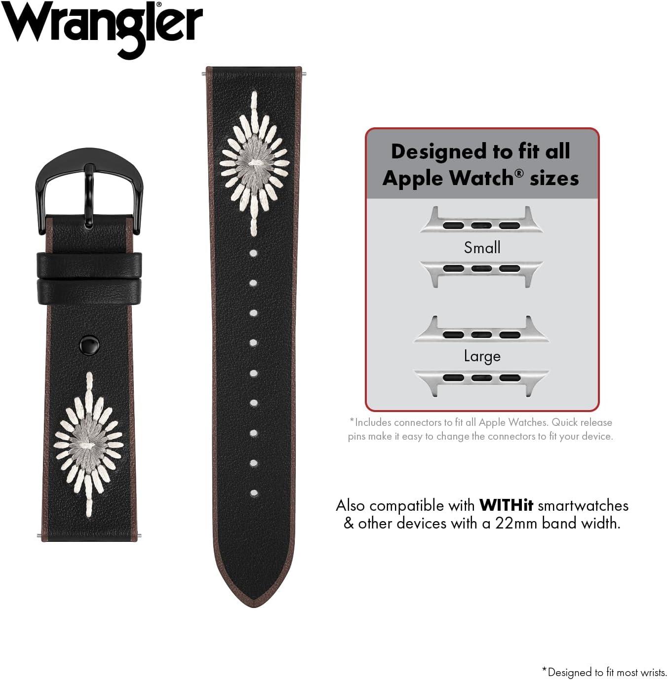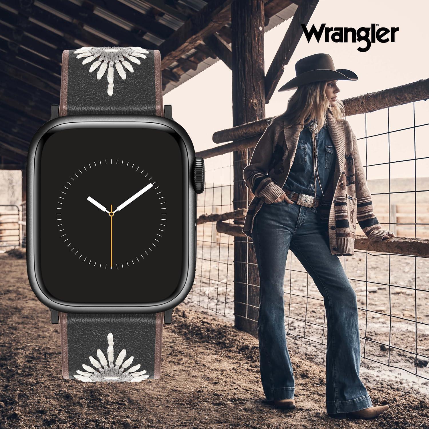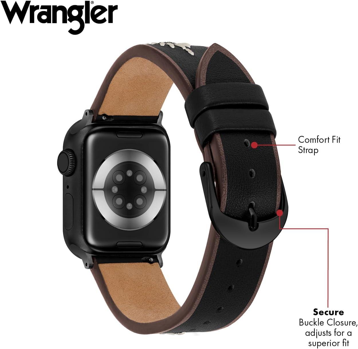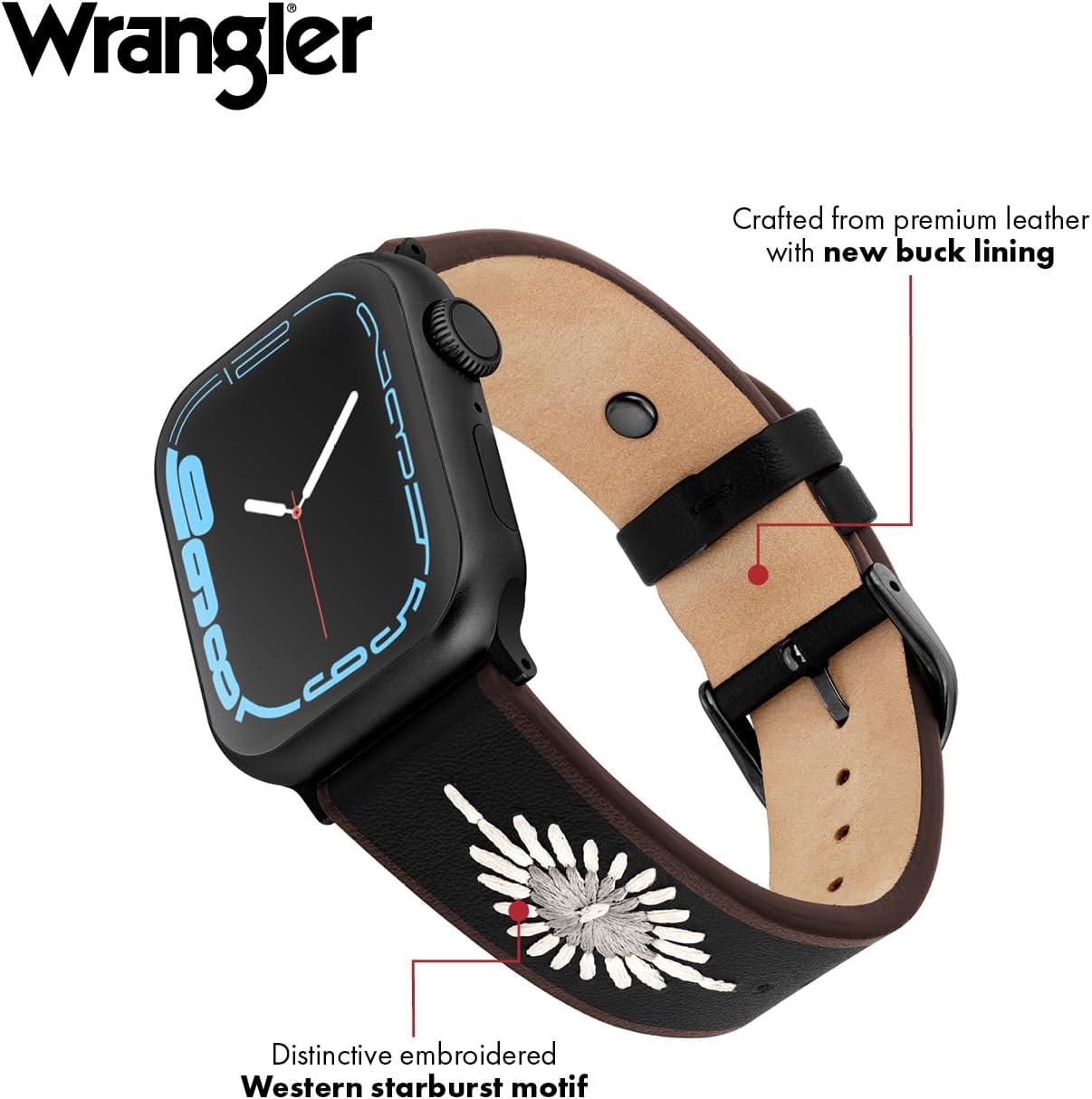Wrangler® “Western Stitch” Leather Band for Apple Watch®, Embroidered Star, Fits all Apple Watch® Series and Sizes(Black)