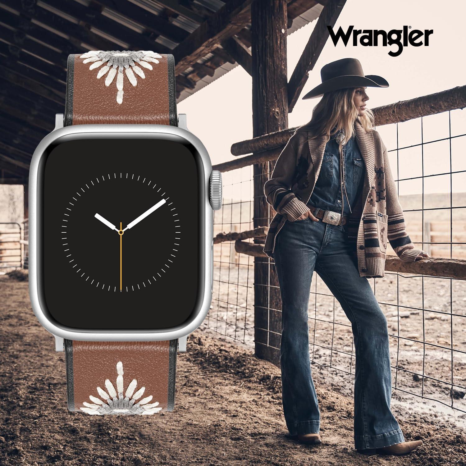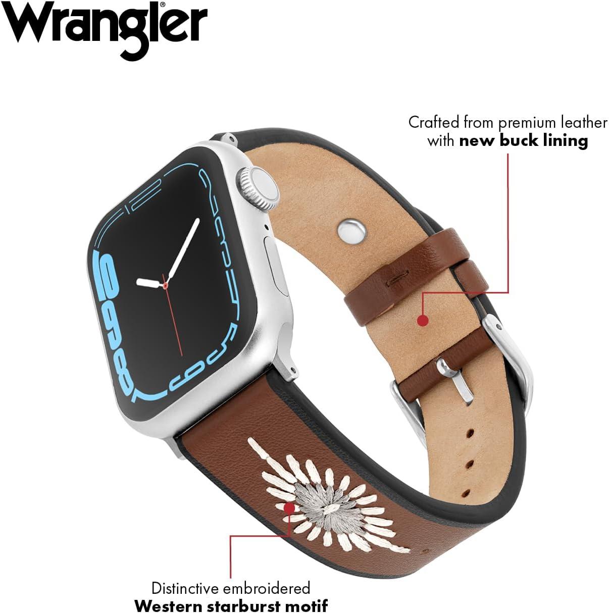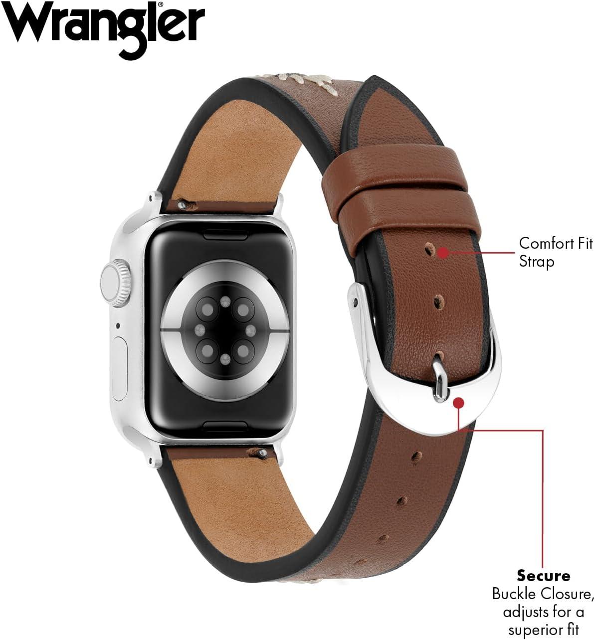 Wrangler® “Western Stitch” Leather Band for Apple Watch®, Embroidered Star, Fits all Apple Watch® Series and Sizes(Brown)