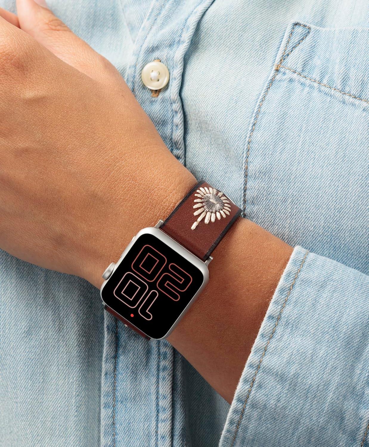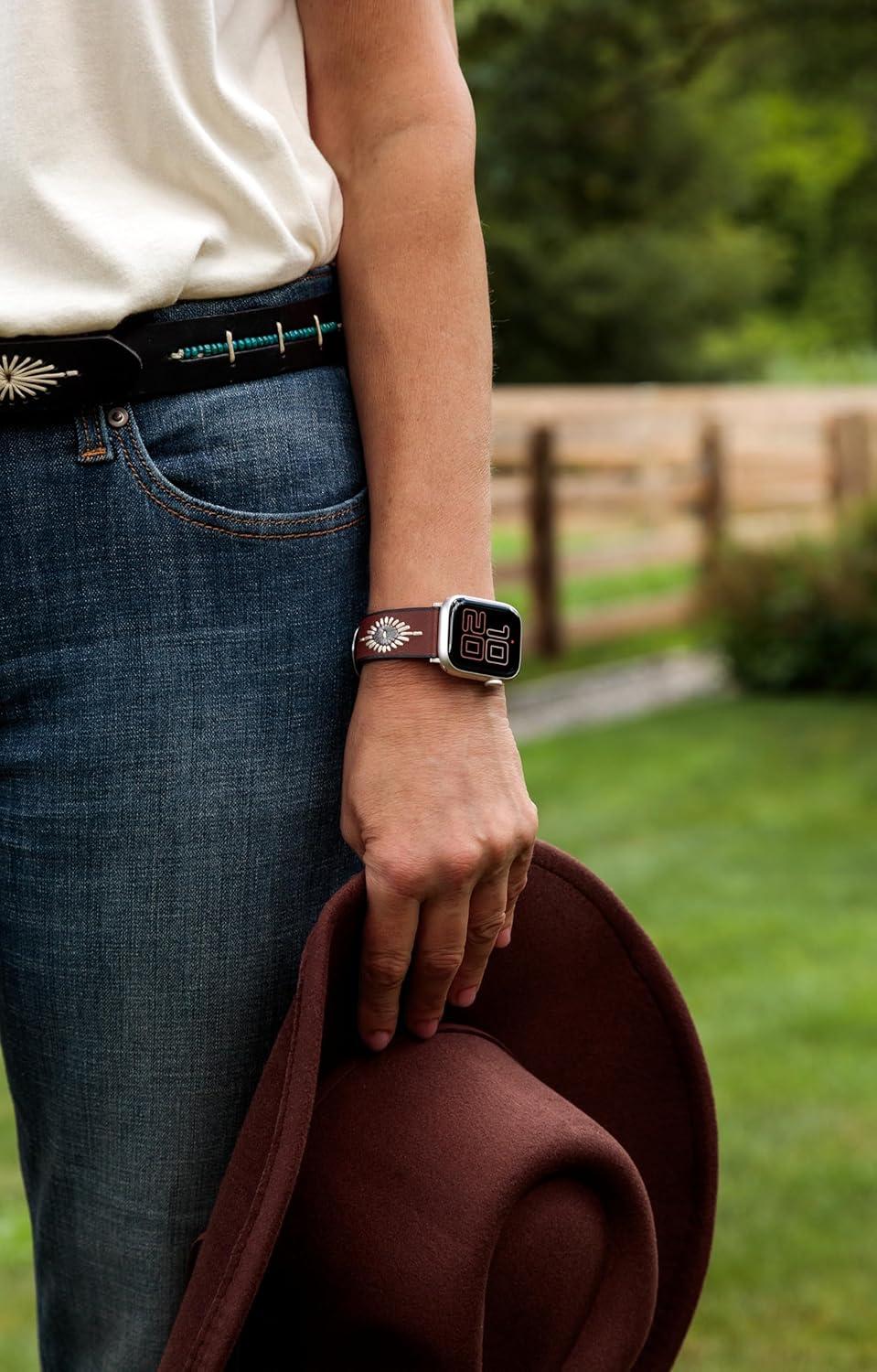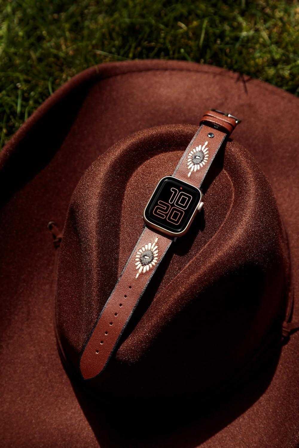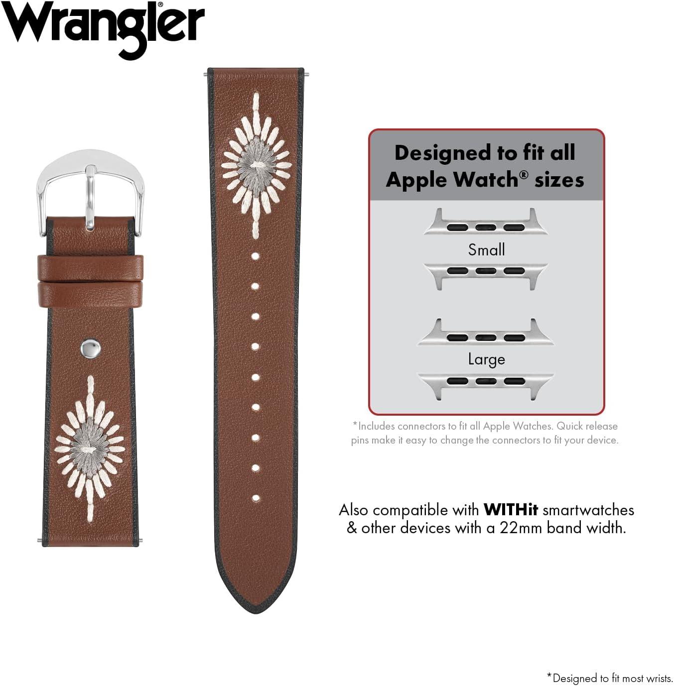 Wrangler® “Western Stitch” Leather Band for Apple Watch®, Embroidered Star, Fits all Apple Watch® Series and Sizes(Brown)
