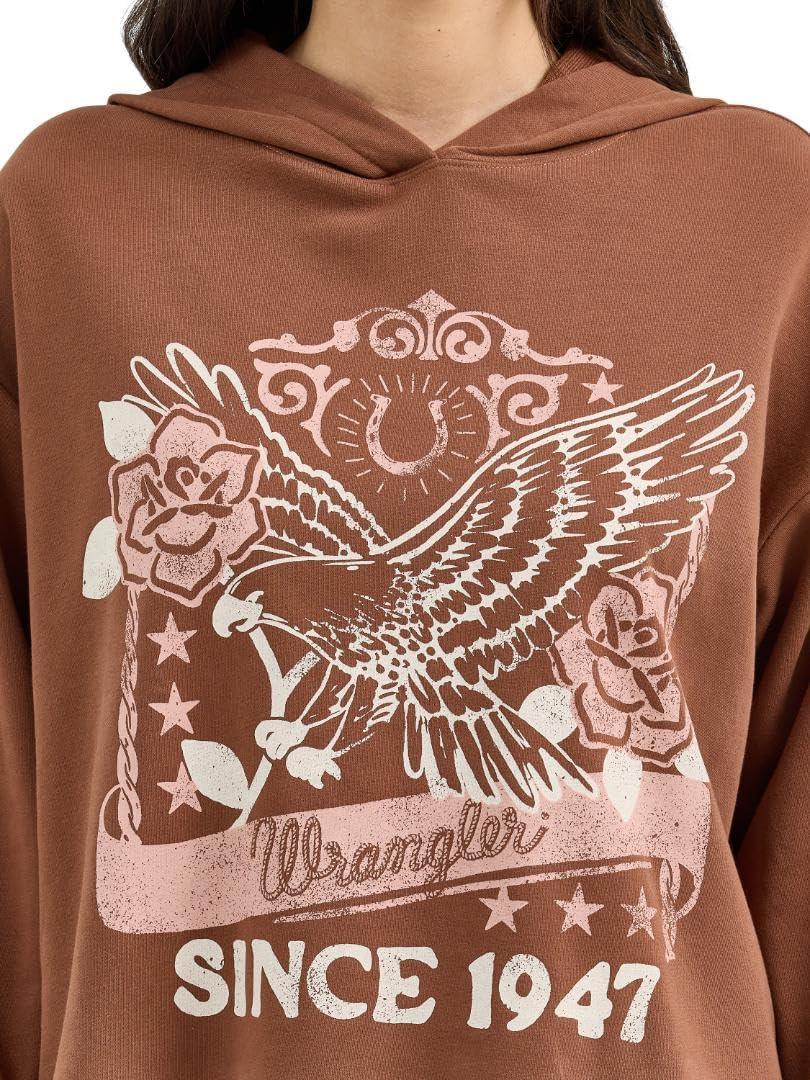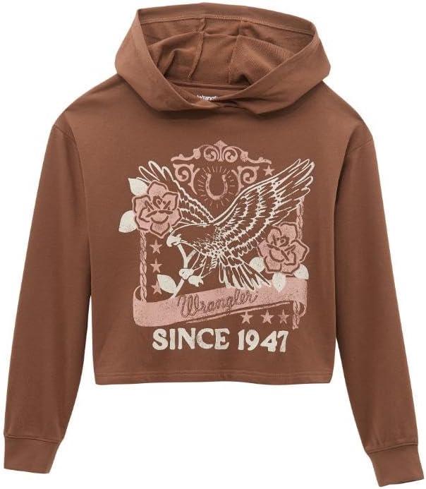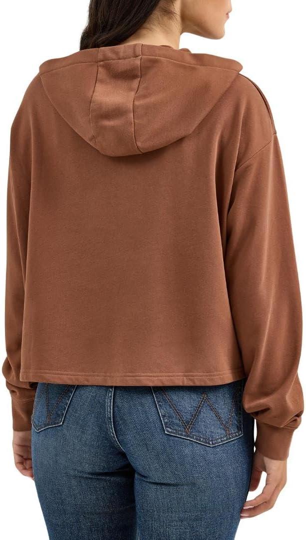 Wrangler Western Women’s Retro Cropped Hoodie Sweatshirt, Cacao Nibs, Large