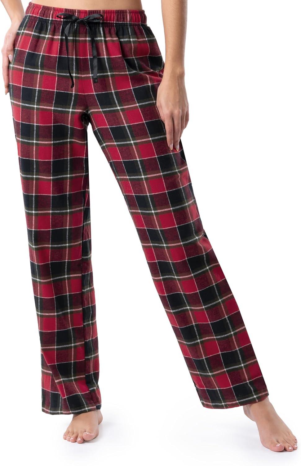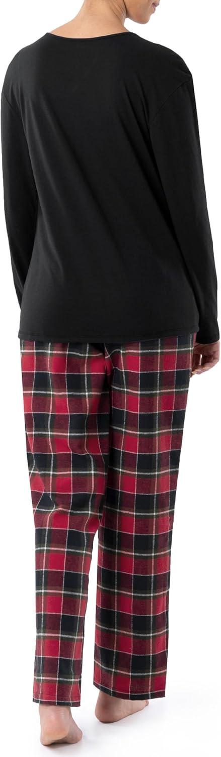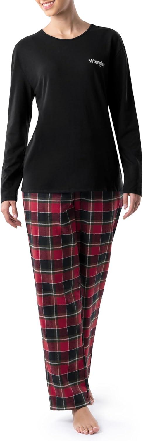 Wrangler Women’s Jersey Top and Flannel Pant Sleep Pajama Set(Black/Merry Plaid)