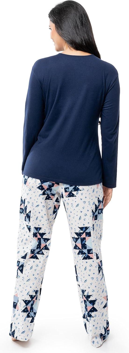 Wrangler Women’s Jersey Top and Flannel Pant Sleep Pajama Set(Blue)