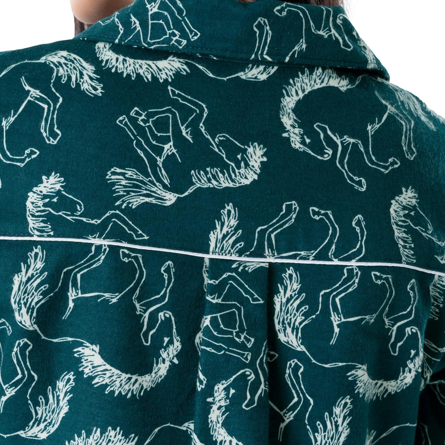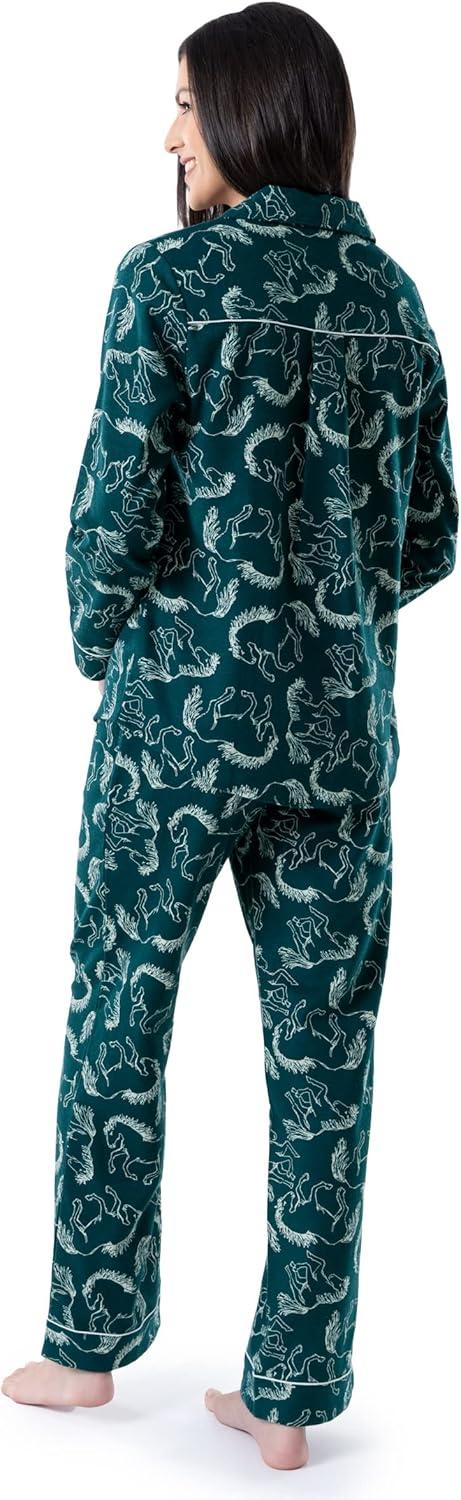 Wrangler womens Long Sleeve Flannel Top and Pant Pajama Set(Deep Teal Horse Toss)