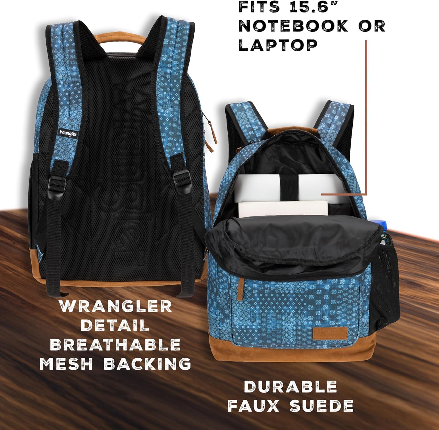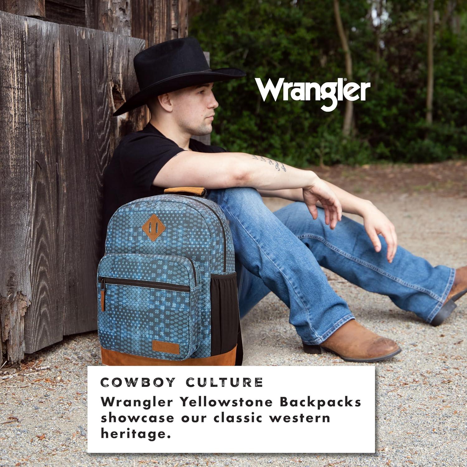 CLASSIC DESIGN: Wrangler Yellowstone backpack is built for practical use while offering modern style. Equipped with carefully designed interior and exterior pockets, this convenient and comfortable pack keeps your laptop and supplies secure.