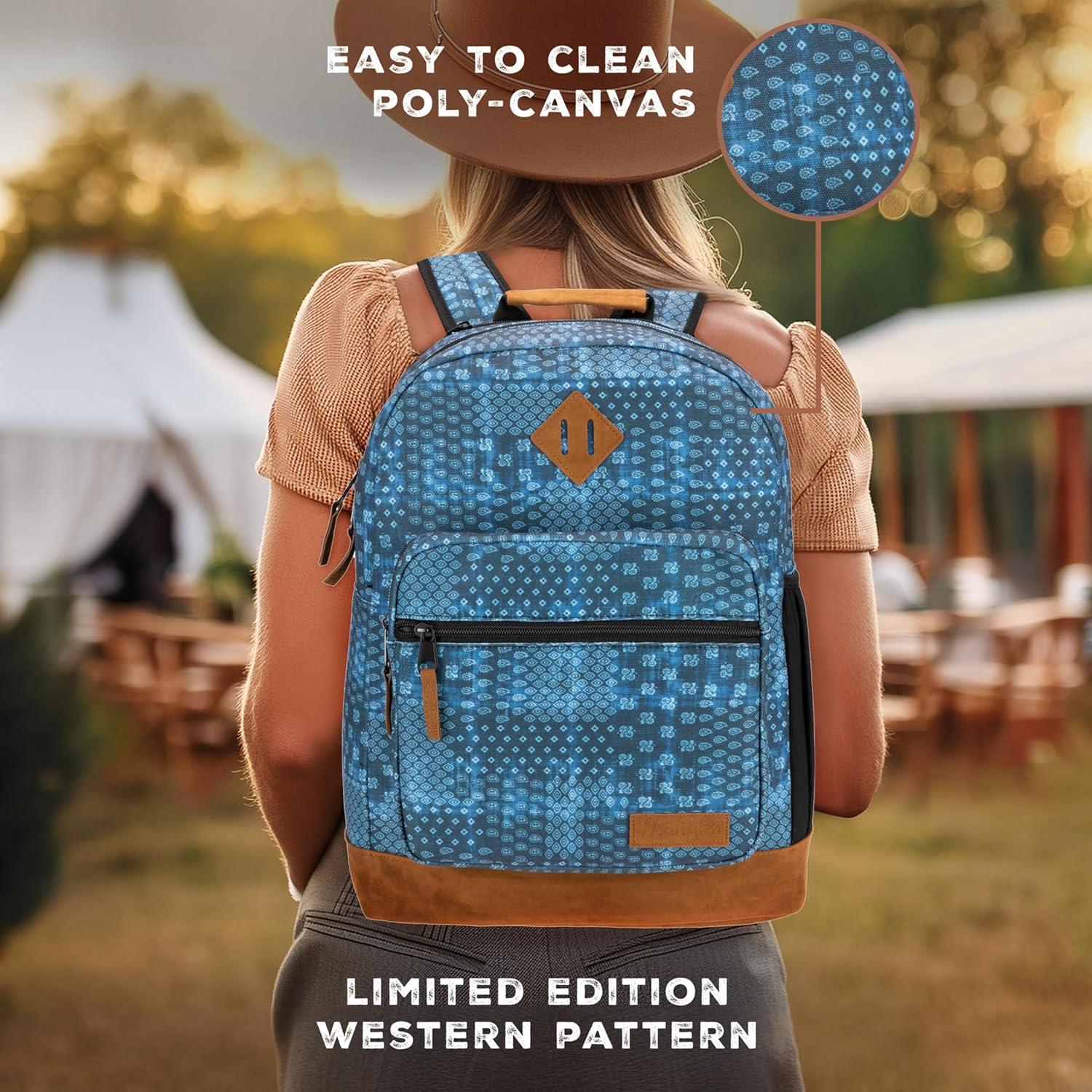 Wrangler Yellowstone Sturdy Backpack for Travel Classic Logo Water Resistant Casual Daypack for Travel with Padded Laptop Notebook Sleeve (Wild West)(Teal)